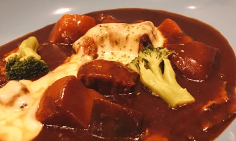 今週のシェフランチ(週替り)はビーフシチューです。 柔らかく煮込んだ牛バラ肉をデミグラスソースで煮込み、仕上げにモッツアレラチーズをかけました。