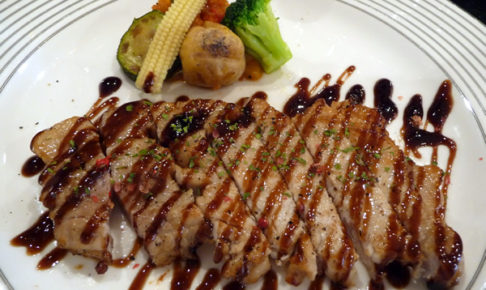 今週のシェフランチ(週替り)はポークステーキバルサミコソースです。 肩ロース肉の旨味と煮詰めたバルサミコソースの相性バツグンです。